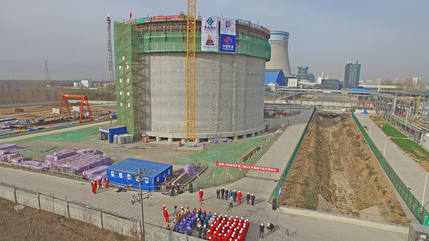 3月15日,在兩臺大型鼓風(fēng)機不斷工作3小時38分后,陜西燃?xì)鈼盍鐻NG項目擴能工程5萬方儲罐升頂成功。楊凌液化天然氣(LNG)應(yīng)急儲備調(diào)峰項目擴能工程是陜西省重點民生工程項目,該項目承擔(dān)著陜西省冬季調(diào)峰、民生用氣和全省長輸管網(wǎng)供氣的應(yīng)急保障工作,也是目前內(nèi)陸地區(qū)最大的LNG調(diào)峰項目,儲罐內(nèi)外罐使用的9Ni鋼、S275J2鋼板均由南鋼提供。