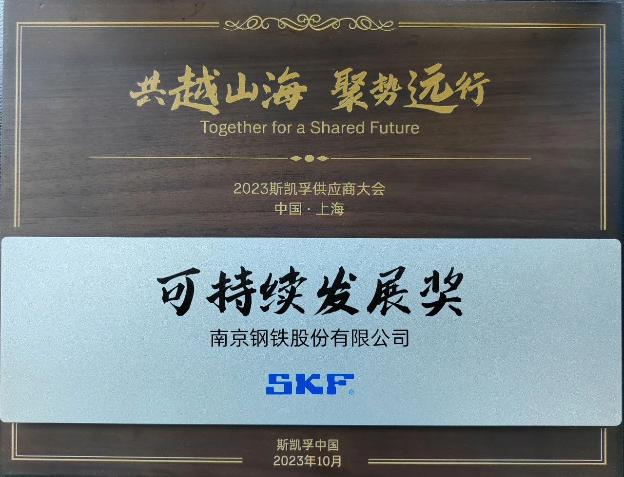 10月27日,2023斯凱孚(SKF)中國供應商大會于上海舉行,南鋼獲得斯凱孚頒發的“可持續發展獎”,這是繼上半年獲得斯凱孚“綠色供應商獎”之后再獲殊榮。南鋼常務副總裁徐曉春率軸承鋼銷售研發團隊出席會議。