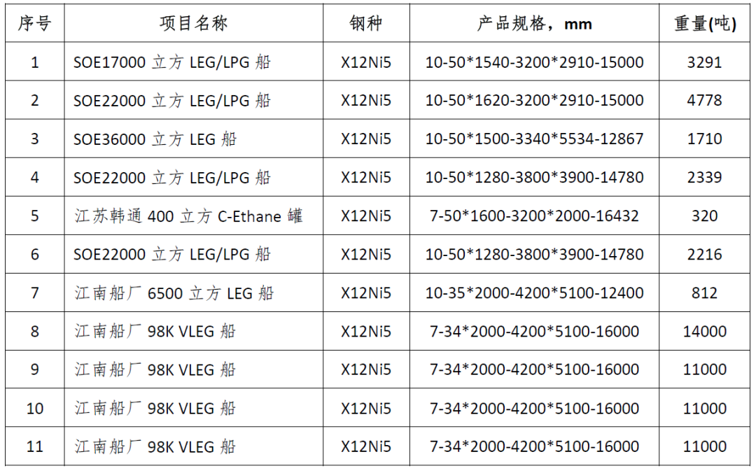 7、2019年與江南船廠開展合作,開發出窄公差帶鋼板生產工藝,為大型B型VLEC船罐建造奠定基礎;并陸續為江南船廠全球最大VLEC船液貨倉提供5Ni鋼材料;