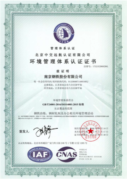 相關政策:南京鋼鐵股份有限公司生態環境聲明